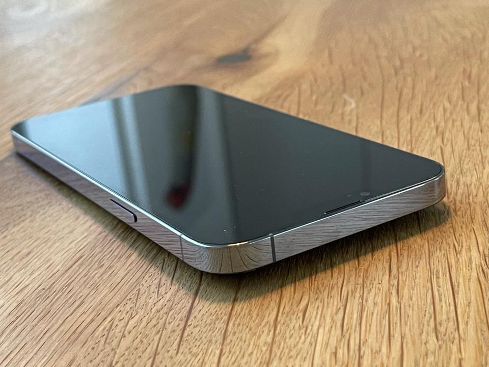 At first glance, the design seems to be identical to the iPhone 12 Pro Max, apart from those bigger cameras. The same flat-edged design that was introduced last year. Well, it’s proved a hit, so you can see why Apple stuck with it. The first visible difference is the new color finish on the elegant, subtle Sierra Blue which has replaced last year’s Pacific Blue. This is much lighter, a pale but striking shade.