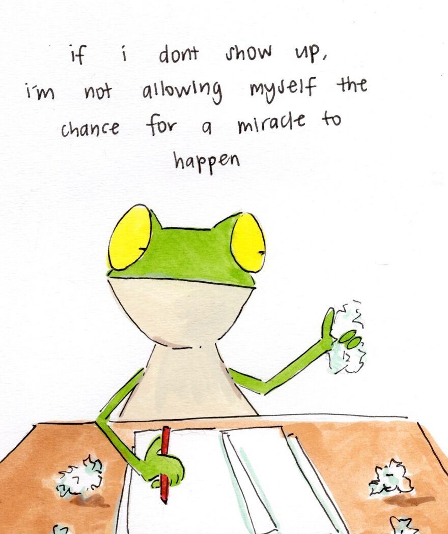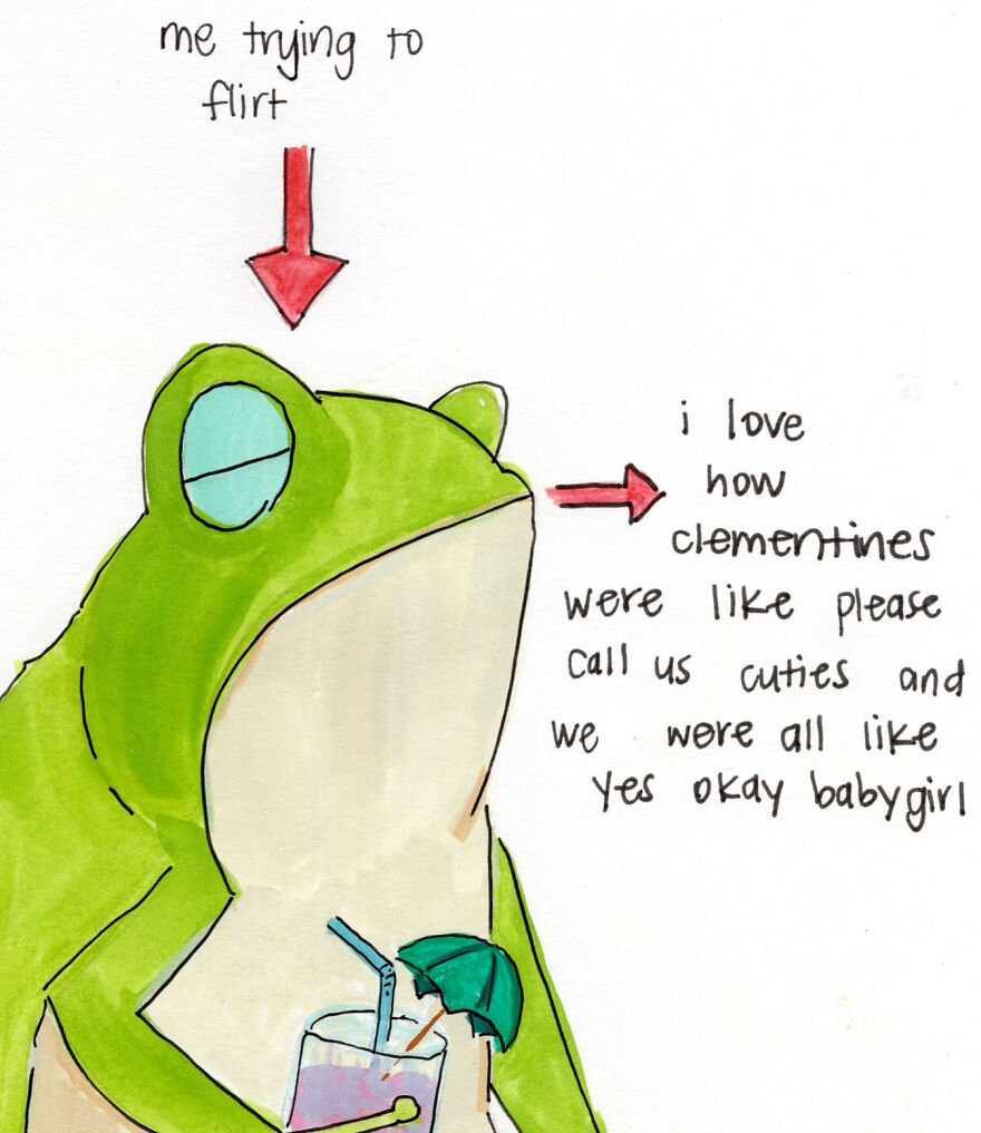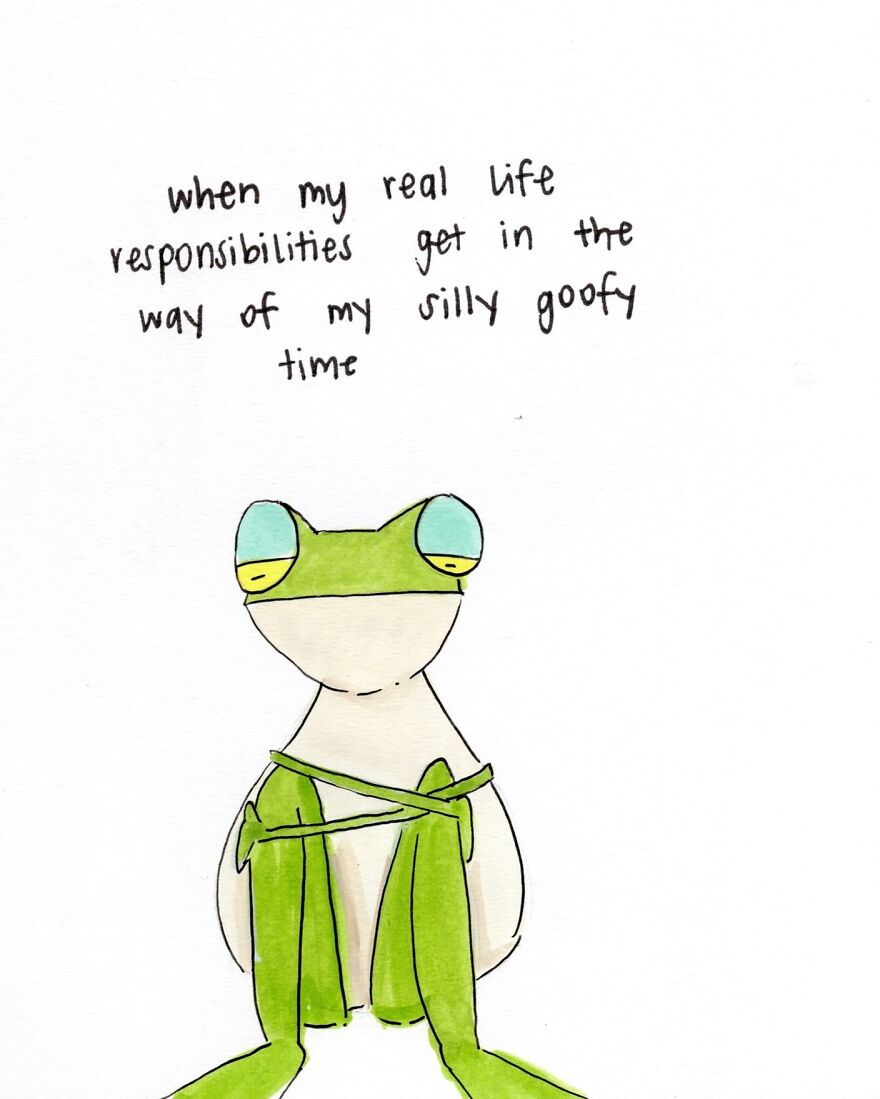 In an interview with Bored Panda, Sarah shared insight regarding her artwork: "I think it’s interesting that while it being a frog I draw, the stuff I talk about is deeply human and relative to the human experience."