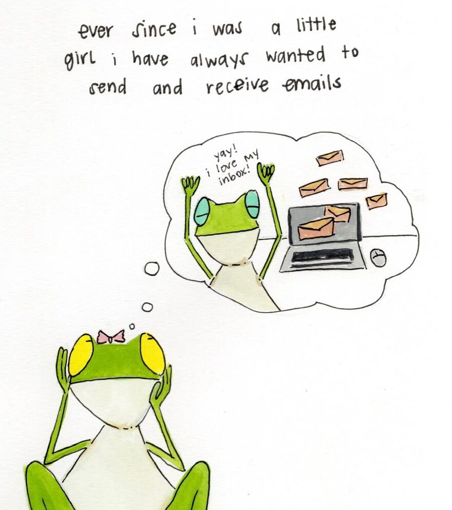 She wrote: "I get embarrassed when people ask me what I do for work because the answer I can think to give is, ‘I overthink and draw frogs about it’… but I guess I'm an illustrator?