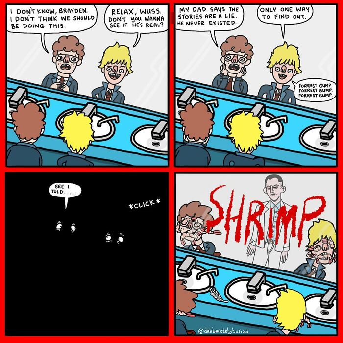 If you’re in need of some entertainment right before the weekend, we've got you covered! We're serving up a dose of excellent, sometimes dark humor by none other than Sean Berthiaume and his series "Deliberately Buried Comics." If you missed our previous posts featuring this artist’s work, you should definitely check them out now.