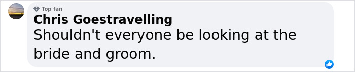 “Shouldn’t everyone be looking at the bride and groom,” a reader commented
