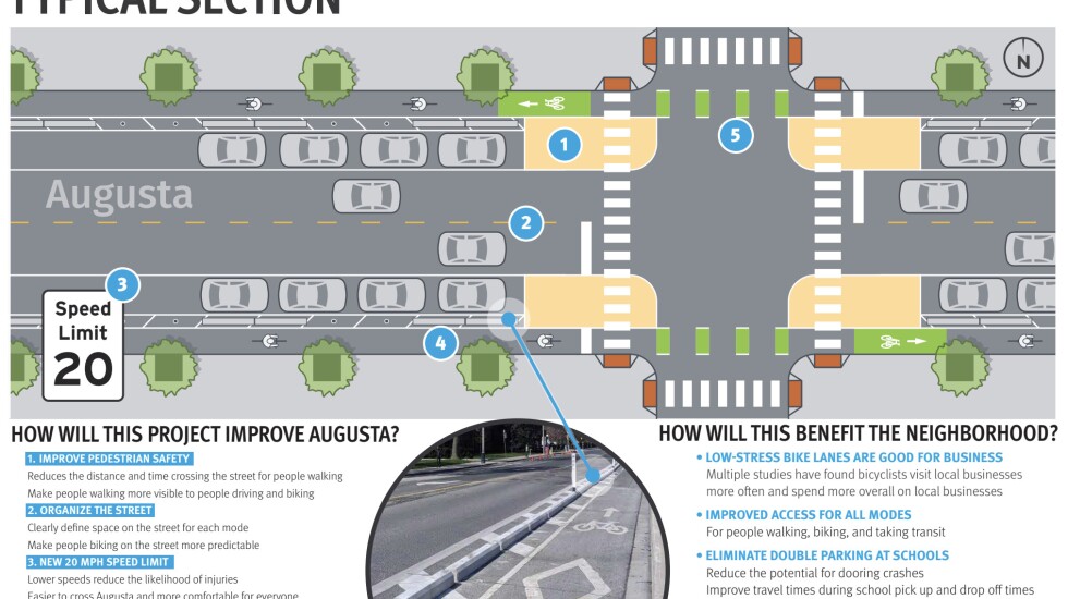 In the meeting, city officials said the stretch of Augusta between Western and Milwaukee had seen hundreds of crashes between 2016 and 2020: 441 total crashes, 92 with injuries and two fatal crashes. Most of the bicycle crashes were at Augusta and Damen Avenue and near Augusta and Milwaukee.