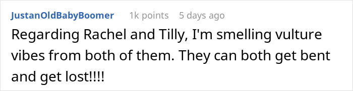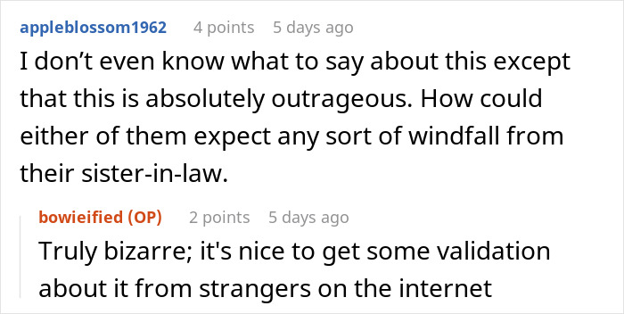 We would love to hear your thoughts on this situation in the comments below, pandas. How would you have responded to this aunt’s request for a new home? Then, if you’d like to check out another Bored Panda article discussing inheritance drama, look no further than right here!