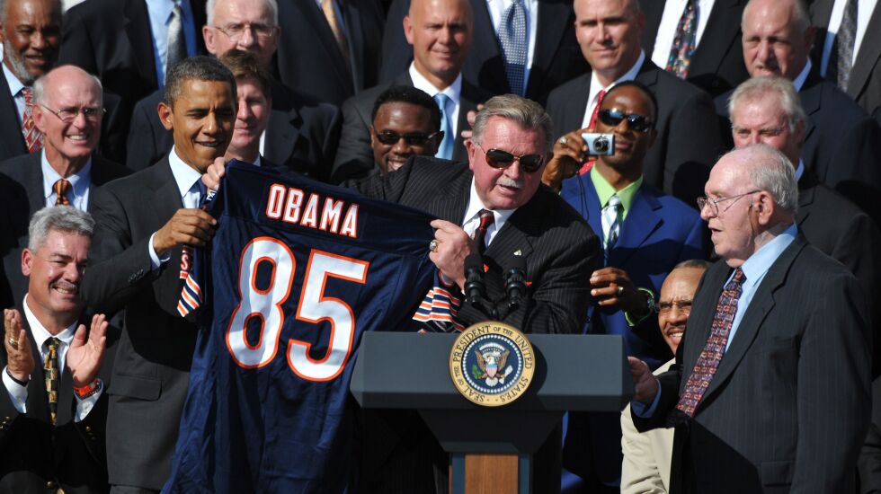 Obama, who made Chicago his adopted home, hasn’t been shy about his allegiance to the Bears. He welcomed the Super Bowl champion ’85 Bears to the White House in 2011. The team hadn’t visited because of the space shuttle Challenger disaster two days after the Super Bowl.