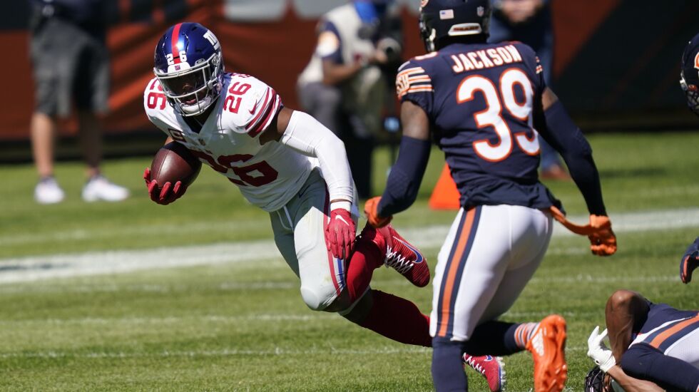 Barkley finished with 18 carries for 164 yards. Through three games, he is second in the NFL with 317 rushing yards on 53 carries — a 6.0 average that is reminiscent of Barkley’s rookie season.