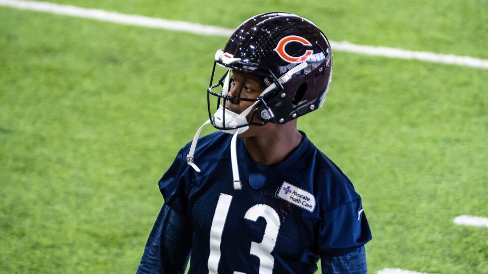 He has two catches for 33 yards and played just 26 snaps over the first three games. His most extended playing time was getting 34% of the snaps against the Packers in Week 2 and he was no higher than fourth in the pecking order at receiver behind Darnell Mooney, Equanimeous St. Brown and Dante Pettis.