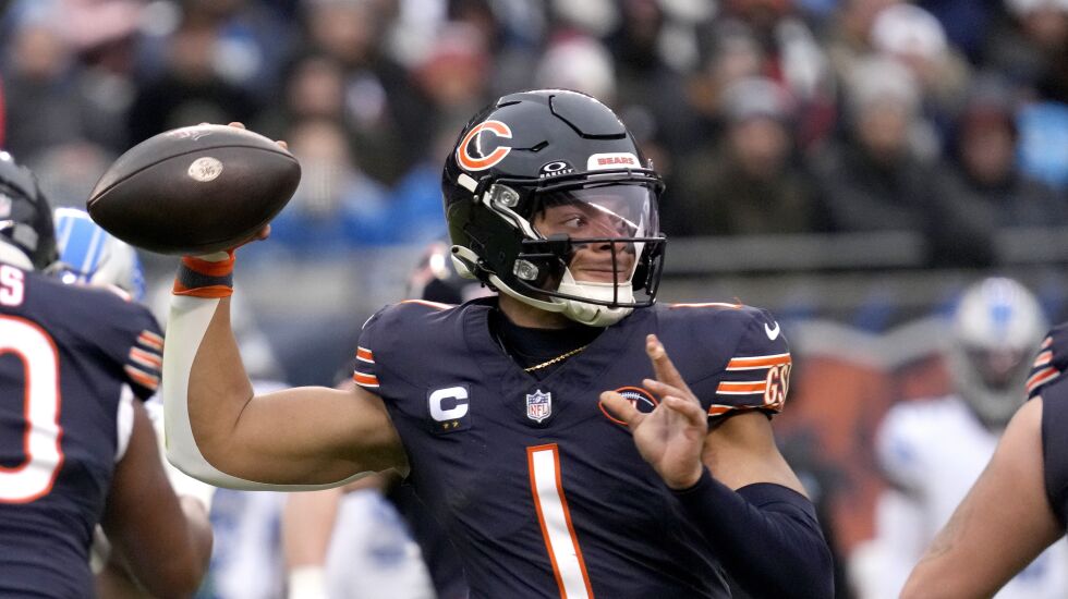 The first half turned when cornerback Jaylon Johnson intercepted a pass from Lions quarterback Jared Goff, and the Bears got to the Lions’ 38-yard line but couldn’t convert on fourth-and-one as offensive coordinator Luke Getsy called a pitch to DJ Moore.