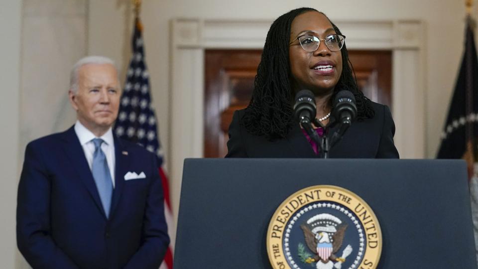 Biden announced Jackson’s nomination in a White House address, hailing her “uniquely accomplished and wide-ranging background” and stating that she “cares about making sure democracy works for the American people.”