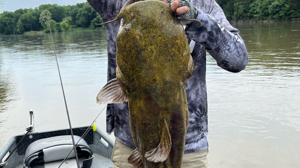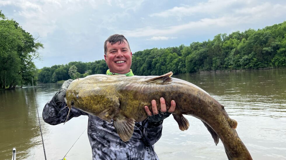 David King caught a 32-pound, 3-ounce, 39-inch flathead catfish on June 12 while fishing for smallmouth bass on the Kankakee River. The Wheaton man was using a Livingston Lures lipless crankbait.