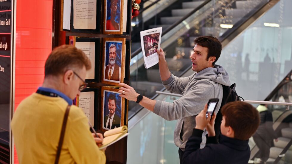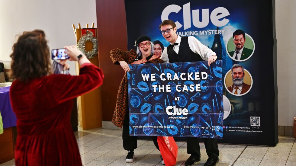 And with that, we headed up an escalator in search of the first clue. Here’s the weird thing: There is no mansion — not even a house dressed up to look like one. You’re searching for clues in Block 37, a glistening, multi-story shopping mall. On this particular evening, it was swarming with teens doing what teens do: clutching each other, giggling, gawking — blissfully unaware of the crime that had been committed in their midst.