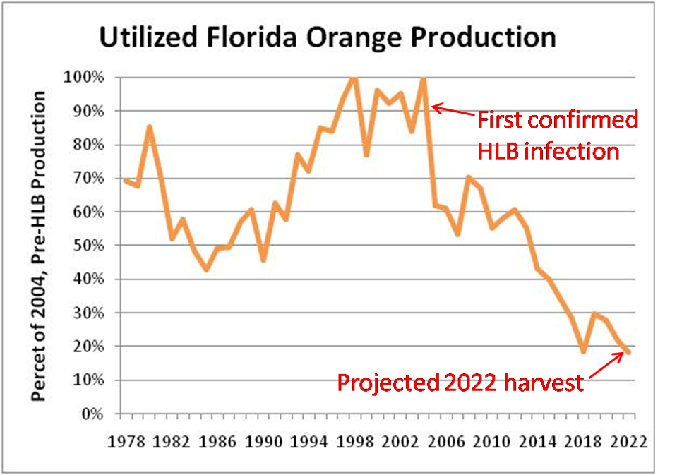 So yes, the continuing HLB pandemic will result in a record low Florida orange crop in 2022. But there is still reason to hope that a combination of grower dedication and research to develop diverse strategies will ultimately mean that consumers can continue to enjoy these flavorful and health-promoting fruit and juice options. Finding solutions is not just important for the Sunshine State but also for other HLB-threatened states like Texas, Arizona and California.