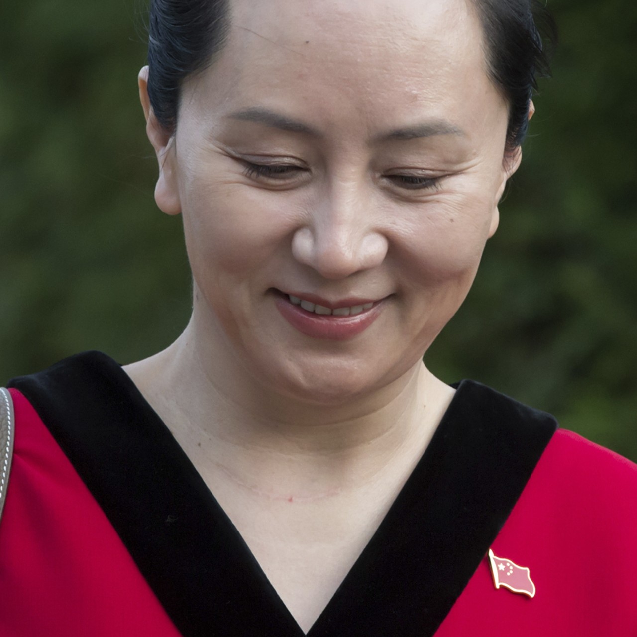 Meng, 47, was dressed in a bright red dress, accessorised with an enamel Chinese flag pin; the hearing took place on China’s National Day. Her husband, Carlos Liu Xiaozong, also wore a Chinese flag pin, on the lapel of his velvet jacket, as did Chinese diplomats in the gallery.