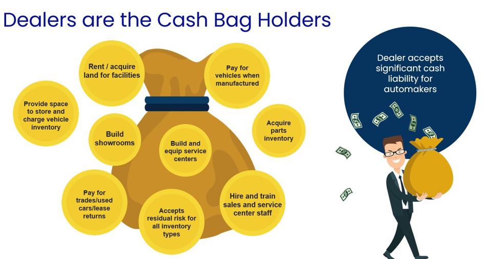 Caption: Dealers are the “cash bag holders” for automakers as they are responsible for the cash requirements of retail operations, including sales and service, as well as the liability associated with used and off-lease vehicles.