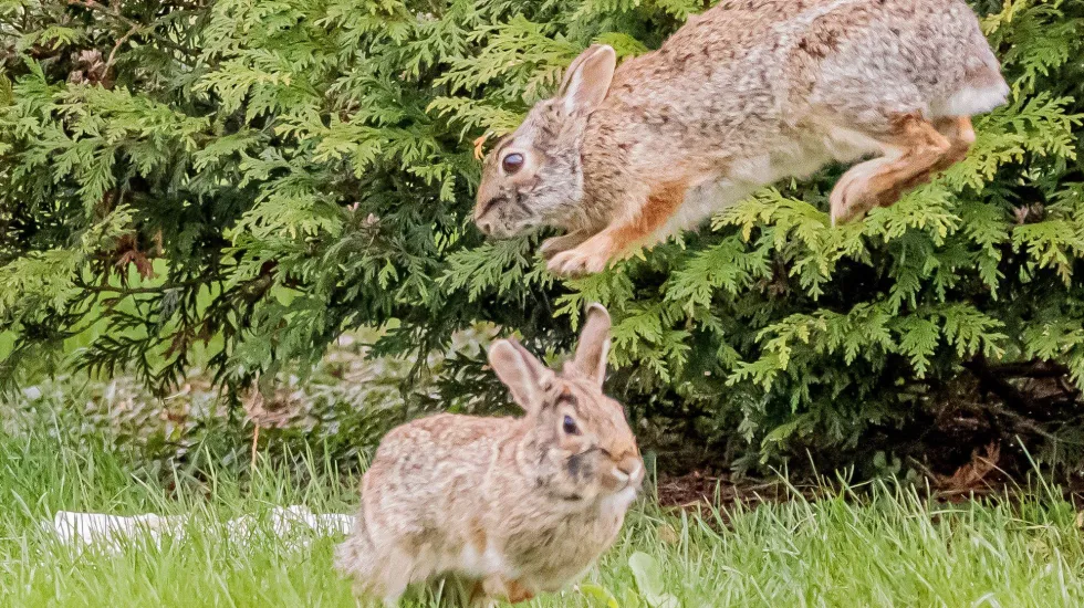 Paul Vriend photographed eastern cottontail rabbits “cavorting” earlier this week at Rosehill Cemetery. I’m an avid, long-time observer of rabbits and that is best shot I’ve seen of that.