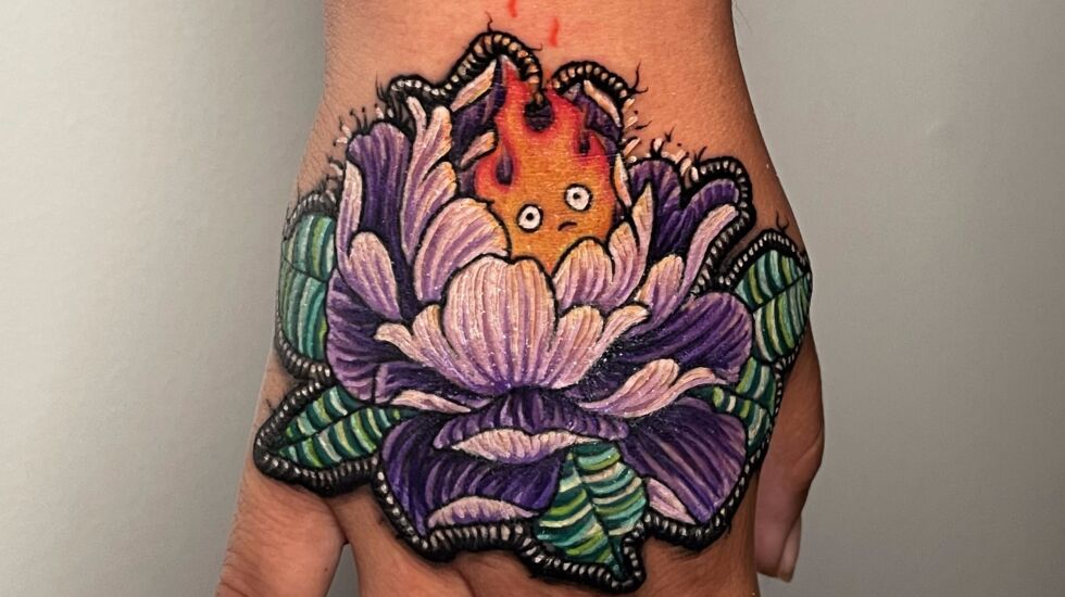 Alicia Casale has been one of those inspirations — her embroidery tattoos draw inspiration from her home of Mexico, with bright pigments and traditional imagery. Other inspirations for Enderson include Eduardo Lozano Barreto and Fernanda Ramirez.