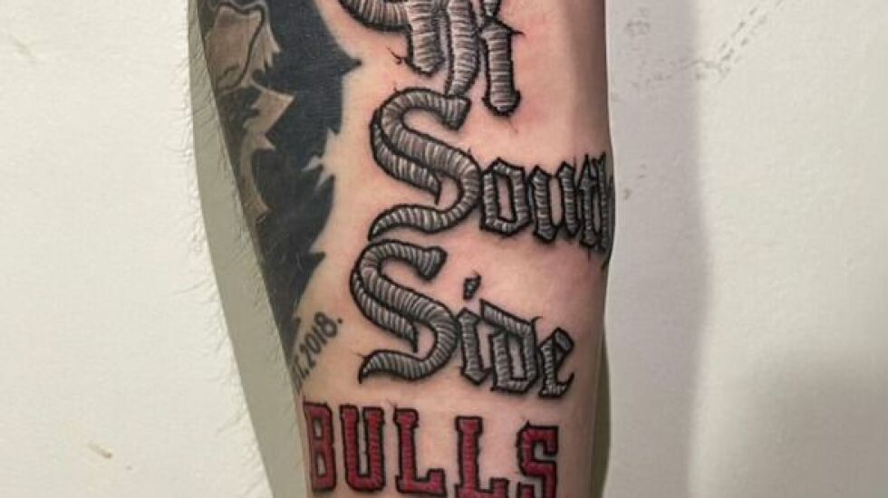 For Jordan Guerrero, Enderson’s boyfriend of nine years and her biggest supporter and longest-standing client, she inked a Chi South Side patch and a Bulls logo that looks like it could have been stitched onto Michael Jordan’s jersey.
