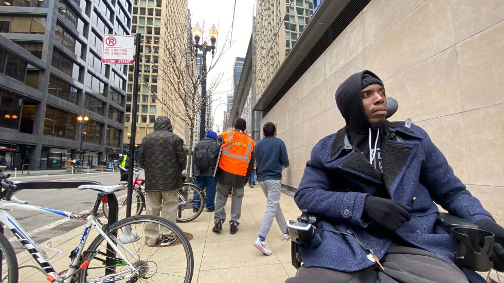 Laura Donaldson sat in her wheelchair in the Loop on Wednesday with a message for someone in the shimmering office towering behind her: “My people need their health and independence, my people need their housing.”