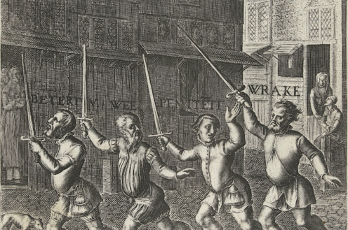 King van Leiden sent people out to spread this revolutionary message and take over other cities. This led to several militant episodes, including in Amsterdam, where in February 1535, 11 Anabaptists paraded naked through the streets proclaiming the “naked truth” of God’s anger.