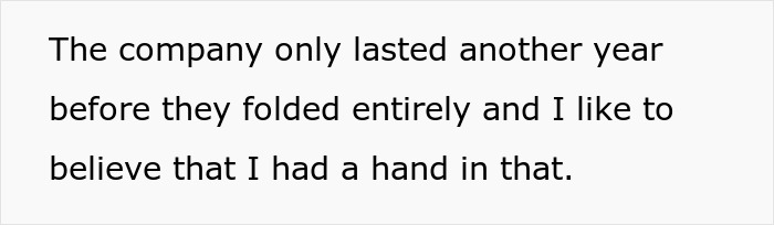 The woman claimed her boss was loaded and the company was merely a “pet project” for him. “There’s no reason he couldn’t help us with those things, other than that he knew that if he didn’t I would eventually cave and do it for him,” she said. Her parting words to Bored Panda were no less harsh than her earlier thoughts about her boss: