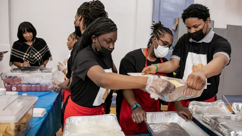 Many students on Friday shared stories similar to Josue’s. Vaughn’s Gustavo Patino, 22, became interested in culinary after watching his mother cook for the family. Tatianna Bowlton, 17, from Clemente, used to follow her grandfather around in the kitchen. And Antonio Anderson, 17, who attends Manley, said his mom used to ask for his help when he was little.