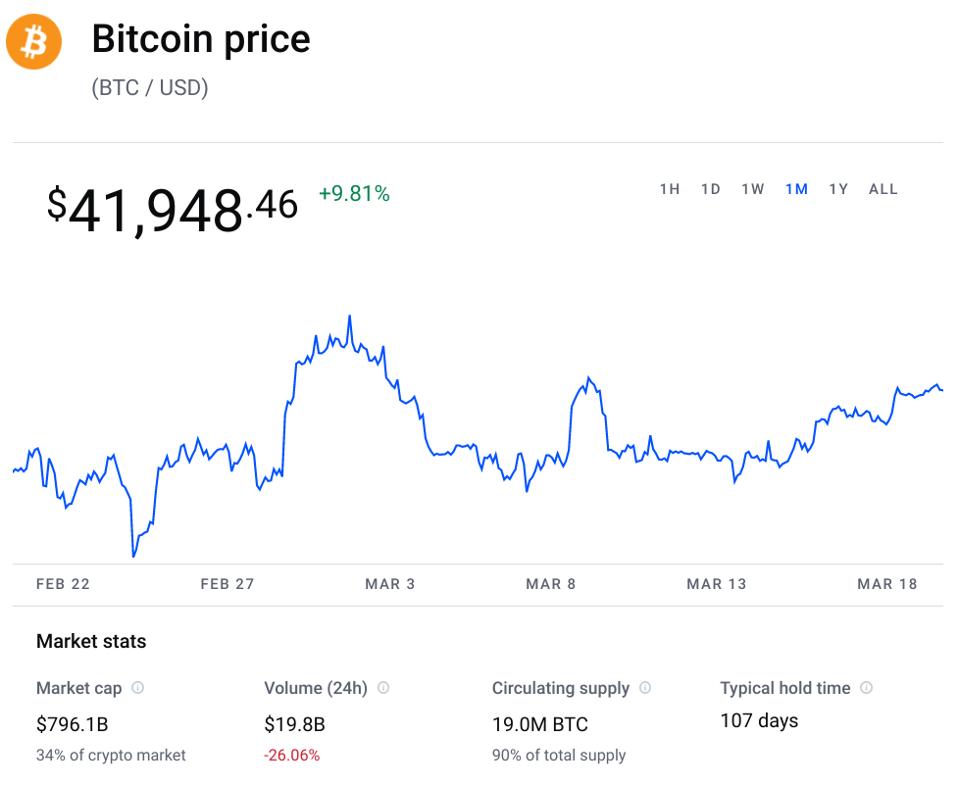 The bitcoin price has broken back above $40,000 per bitcoin as traders welcome the Federal Reserve's steady approach to raising rates and despite the looming threat of increased regulation. Ethereum, BNB, XRP, solana, cardano have also rallied, with recent challengers Terra's luna and avalanche making outsized gains.