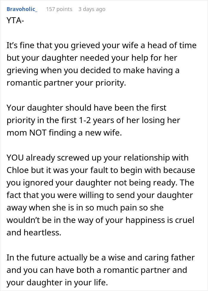 While we only have the father’s side of the story, “Chloe’s” reaction is actually quite telling. Committing to a marriage isn’t something most people look at lightly, so getting out of it this far into the process means she saw something she didn’t like. Beyond the troubled relationship with the daughter, she also indicates some red flags which the man never even mentions.