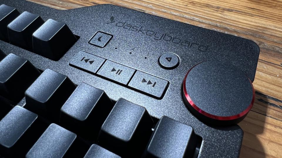 I'm a big fan of Das Keyboard's decks, having picked up one of the original models nearly twenty years ago. The Das Keyboard Ultimate is substantial, with a sturdy, anodized aluminum frame. The Cherry MX switches are crisp and precise. There's no blingy RGB LEDs to distract you, just a bit of luxurious-looking red chrome adorning the volume knob on the upper right. Little details like the footbar also being a ruler are greatly appreciated. Typing on the Das Keyboard Ultimate feels satisfying in a way that pounding on a butterfly-switch laptop keyboard can never be. But first you've got to get comfortable with not looking down. The Ultimate's blank keycaps can make that happen.