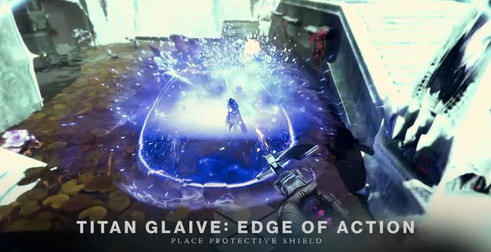 Titan Glaive: Edge of Action – Each class has a unique glaive that has as special perk. The Titan one shoots a protective, Ward of Dawn-like shield. I think these are exotic?
