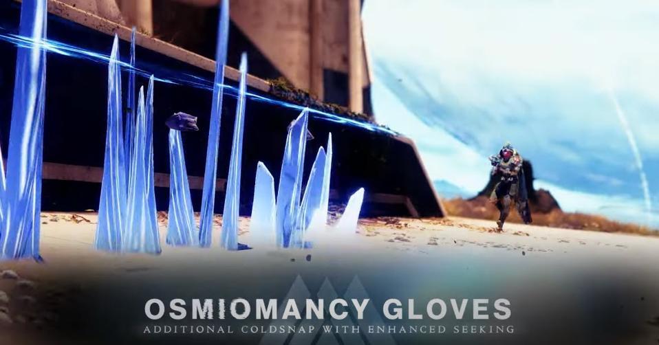 Exotic Osiomancy Warlock Gloves – This gives you an additional Coldsnap trail (or a second grenade? Not sure), with enhanced seeking. Double oh no.