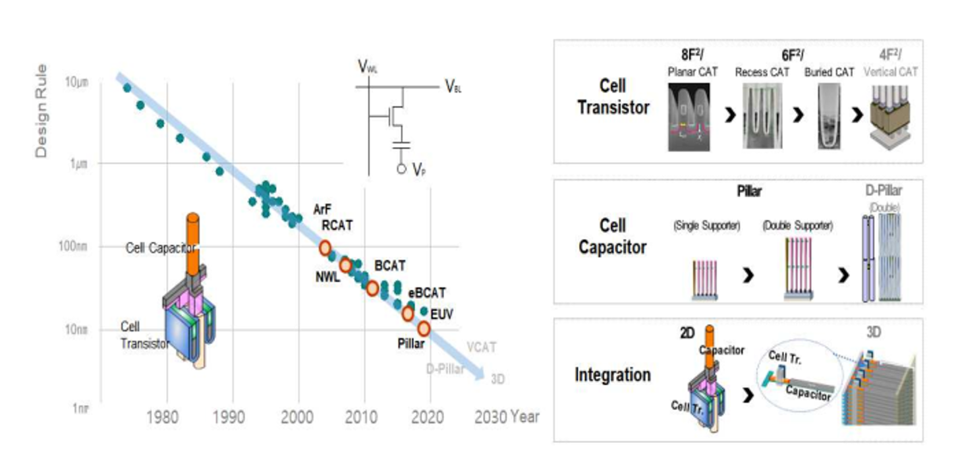 DRAM memory developments continue. DRAM is the working memory in consumer, industrial, PC and data center applications. The figure below shows Samsung’s projections for DRAM development including changes in the cell transistor structure, cell capacitance and eventually 3D DRAM stacking (from Samsung’s plenary talk at the 2021 IEEE IEDM).