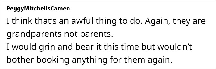 Netizens are divided on this one, with some saying that the woman should just cancel the in-laws’ booking, while others side with the grandparents