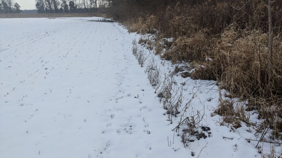 With the snow cover Saturday afternoon, I decided to go earlier than usual. As I expected, there were deer tracks like a highway along the bordering fencerow.