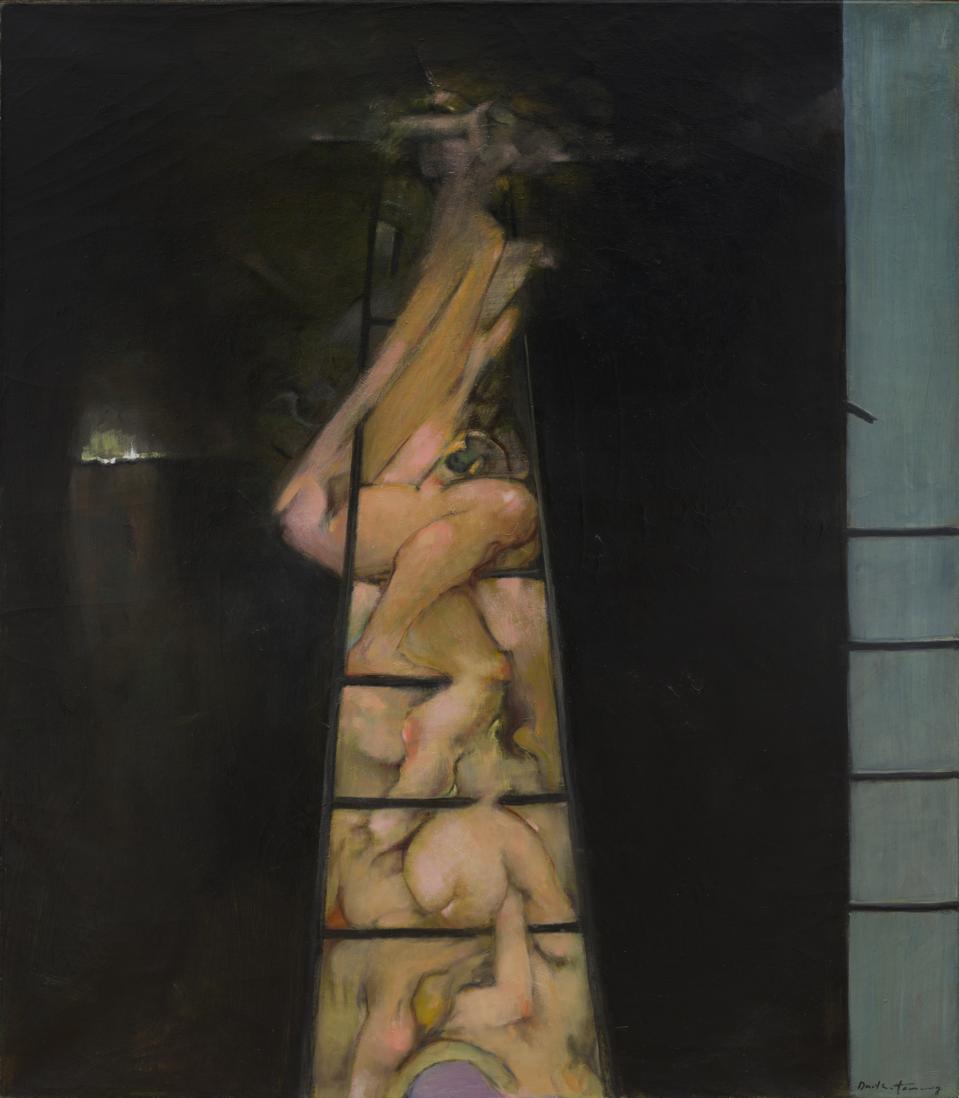 We return to the impenetrable errieness of Pour Gustave l'adoré as we investigate To Climb a Ladder (1987) surrounding a tangle of limbs wrestling and wriggling toward the light. There’s a painting within a painting in what appears to be a process of layering and cloaking more underlying flesh.