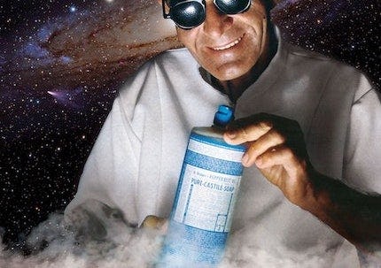 Dr. Bronner’s Magic Soaps, the company known for their wordy labels promoting their waste-free production techniques and philosophical credos on faith in mankind and much (much!) more, have become a big financial backer of efforts to loosen government restrictions on currently illegal drugs, specifically psychedelics. The charge, printed on limited edition soap bottles, is led by founder Emanuel Heilbronner’s grandson David Bronner (interesting fact: The founder dropped the “heil” from his family name after the rise of Hitler.)