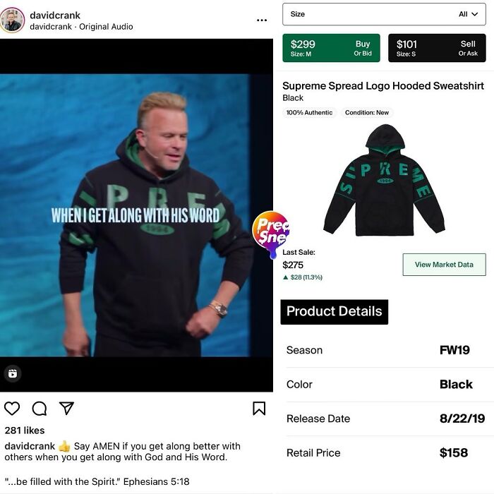 #30 Pastor David Crank Spreading The Gospel And Supreme Logo Since Fw19