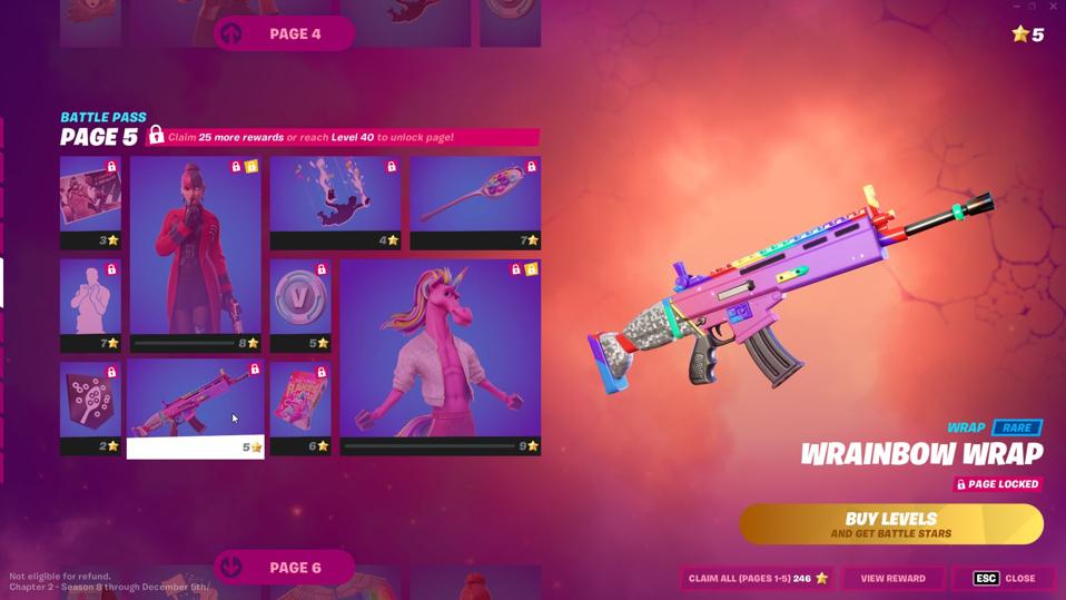 So, if you shell out for the battle pass this time, what do you get? Well, we are back to the whole “choose your own unlock order” with battle stars idea we had last time around, and here are the pages you will clear.
