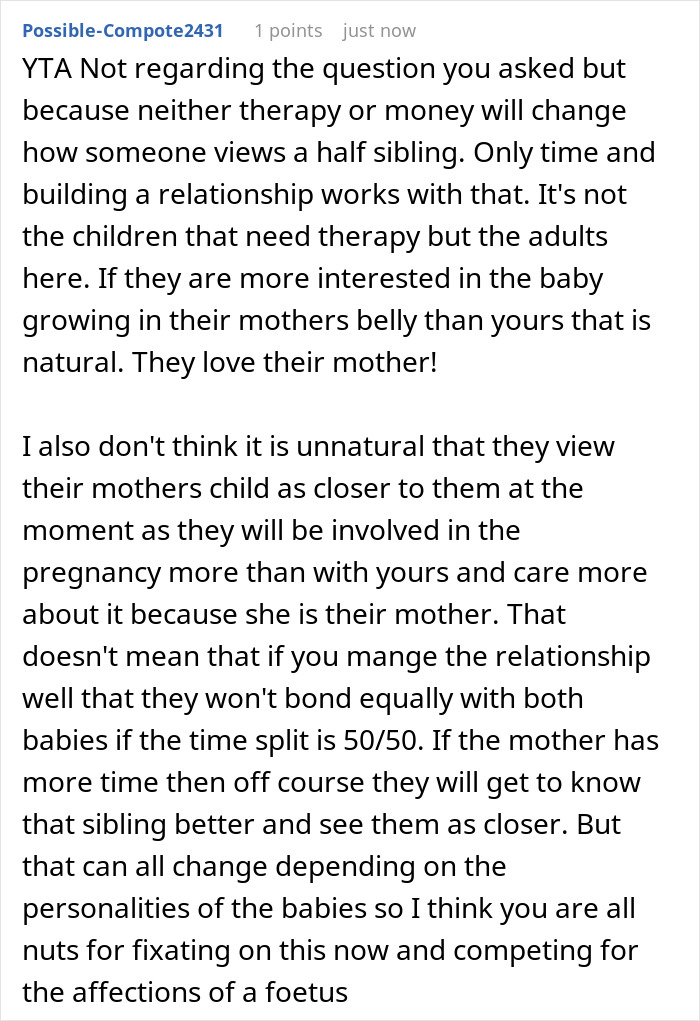 While their mom’s baby has just their mom so they’re ‘real siblings’. This is something being addressed via therapy and my husband and I talking to them.