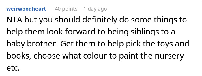When we told them we were expecting they weren’t excited. They see their mom having a baby as different than me having a baby with their dad. We get along so this was a surprise. But they don’t see me as a parent so to them the baby isn’t a sibling.