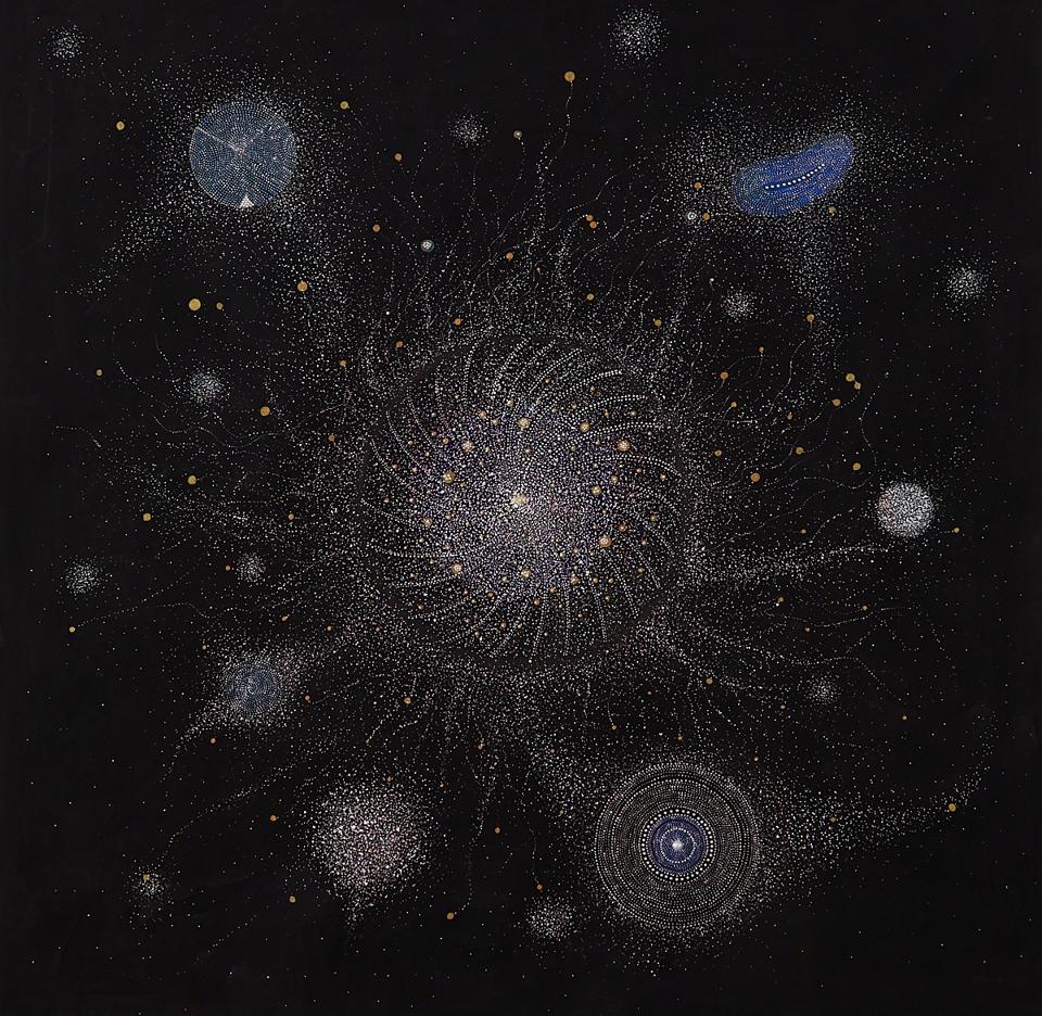 Kim used a needle to create the smallest glowing elements of the galaxy in Multiverse Series - Untitled 1 (2019), conjuring an ethereal mood that whisks us away from our immediate reality.