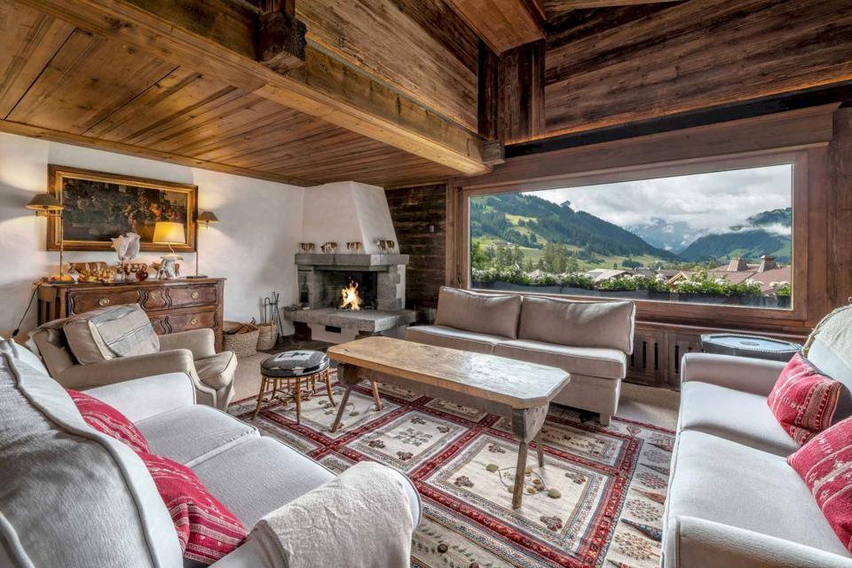 Interior living spaces also highlight Gstaad's charm with features like fireplaces, wood accents or large windows with breathtaking views.