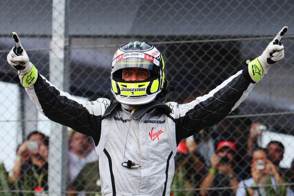 Canada 2011 is best known for Button’s comeback from last place to finish first in a race that was halted because of heavy rain, then gradually dried out once restarted. “In the wet I wouldn’t say I was the best in the wet but the changing conditions are what I love; thinking on my feet and working out which tires to be on...it was the strategy side of things in those conditions that was my strength.”