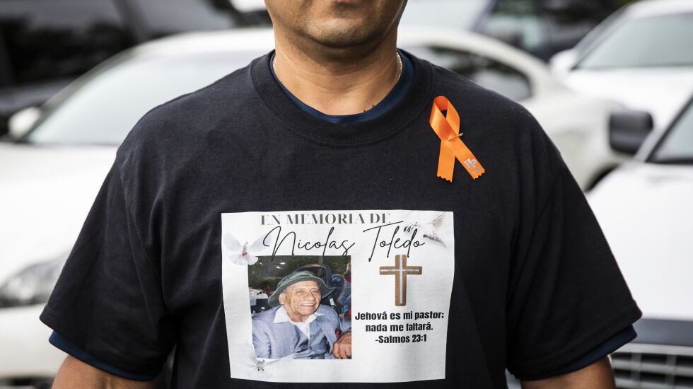 Many family members wore shirts with pictures of Toledo and an inscription of Psalms 23:1, with some adding an orange ribbon, a symbol commonly used to remember victims of gun violence.