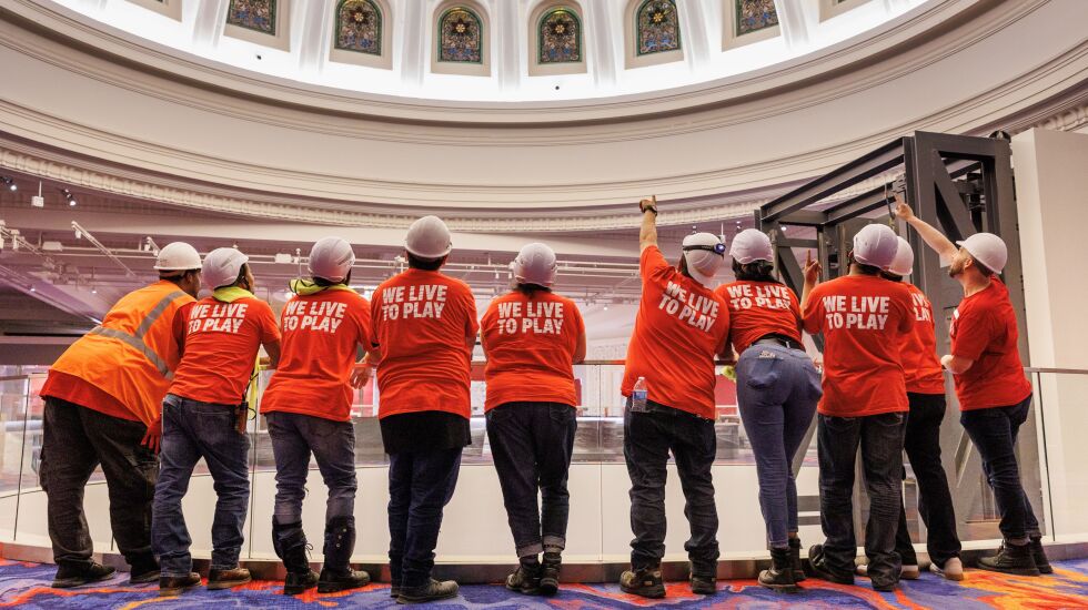 Workers were still positioning plastic-wrapped slots and table games Tuesday, less than a week after the Illinois Gaming Board issued a finding of “preliminary suitability” for Bally’s, an early approval that allows the company to install games and ramp up hiring.