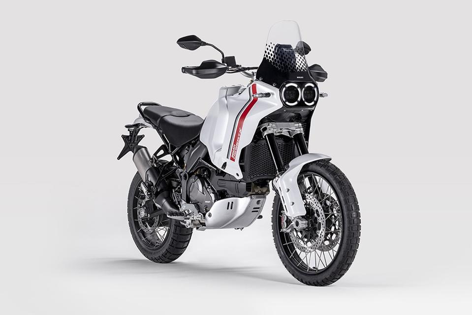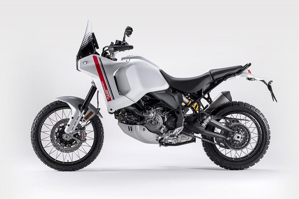 The fabulous DesertX is available in just one color, Star White Silk, perhaps a unique choice for a motorcycle aimed squarely at mud, dirt, gravel, sand, branches and other non-pavement. You fly into and over dirt via a particularly nasty 110-horsepower version of the 937cc Testastretta L-Twin from the Multistrada V2.