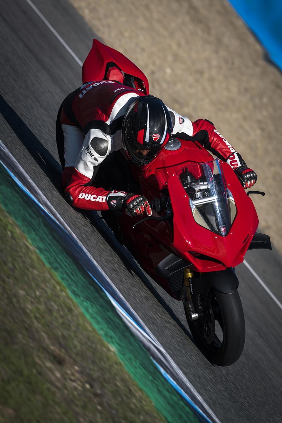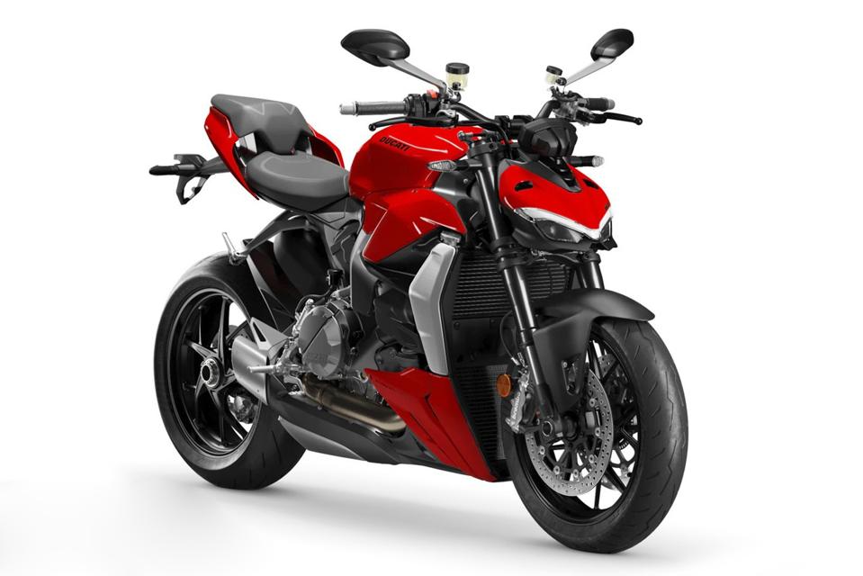 The new carbon rims, 3 lb lighter than those of the Streetfighter V4 S, significantly reduce the moment of inertia and contribute to an overall weight saving of 6.6 lb.