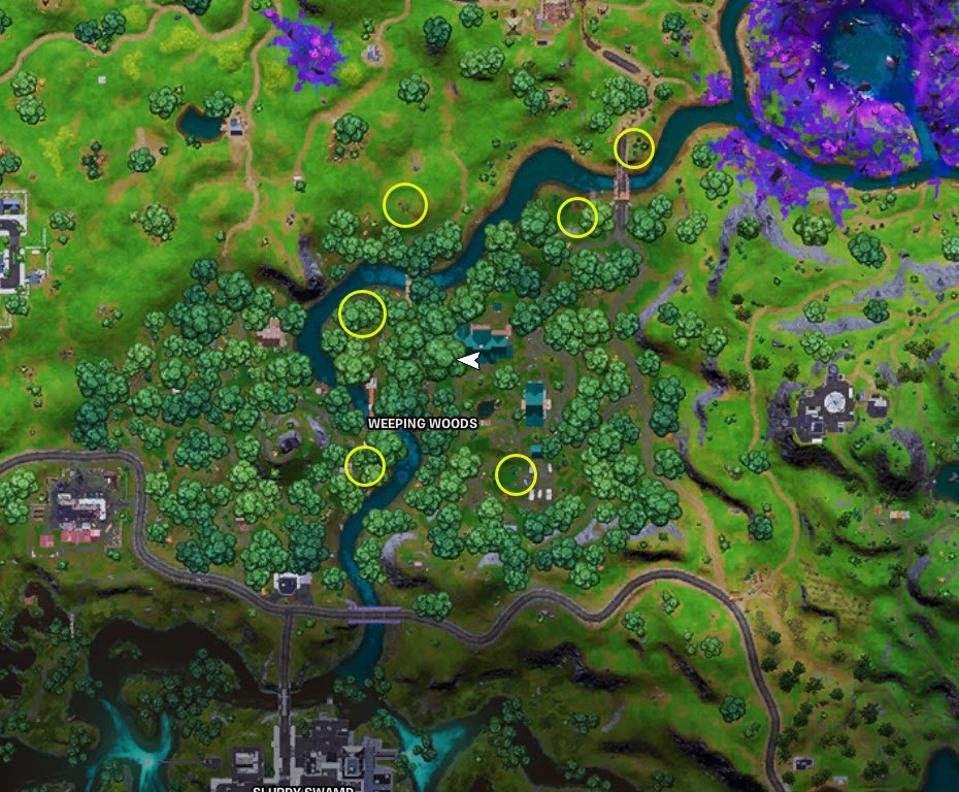 Here’s a map of where all the dead drop locations are in Weeping Woods, though you do only need one of these for this challenges, so there are plenty to choose from.