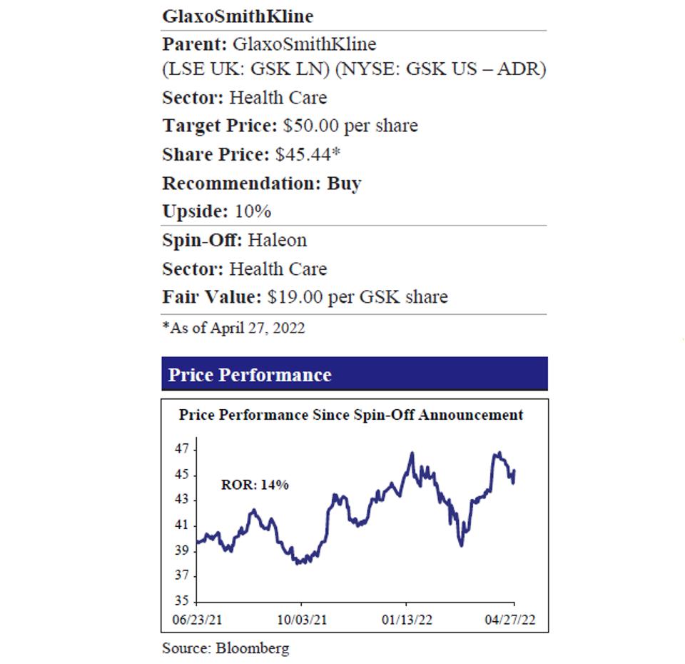 On June 23, 2021, GSK announced plans to spin-off its Consumer Healthcare division into a separately listed company. On February 22, 2022, GSK announced that its Consumer Healthcare business will be named as “Haleon” post spin-off. Post separation, New GSK (Stub unit) will operate as a Biopharma Company focused on specialty medicines and vaccines, while Haleon will be a 100% Consumer Healthcare Company focused on category-leading power brands.