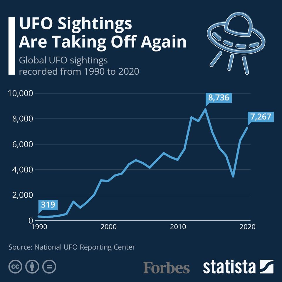 So, are UFO sightings reflecting the unease emanating from U.S. Navy cockpits? There is actually a National UFO Reporting Center in the United States which documents sightings of unexplained aerial phenomena all over the world. Interestingly, sightings have indeed been picking up again and there have been close to a thousand already this year as of mid-May. While there was a dip in sightings in 2018, there were 6,281 in 2019 and 7,267 in 2020. While these numbers might have been discarded as coming from folks with a little bit too much time on their hands in the past, the emergence of encounters backed up by radar contact and advanced sensor imagery have lended them far more credence.