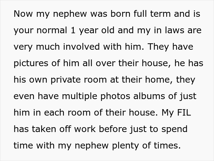 A significant thing that the poster noticed was how much her in-laws seemed to favor their other grandkid. They put pictures of him up all over their house, kept a private room for him, and made an effort to spend extra time with him whenever they could. On the other hand, they never seemed to do that for the triplets.