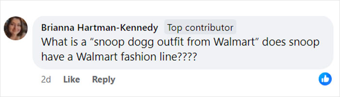 “It’s a Snoop Dogg outfit from Walmart, lol. We used the cheapest possible, and he liked it until he got dressed and then was like, ‘Well sh*t,’ lol.